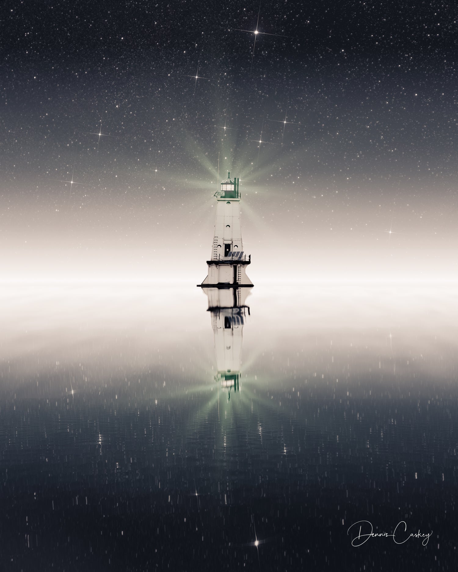 Reflected Light was my way of creating a visual reminder of hope. A minimalist composition; free of noise and distraction, where a single lighthouse rises quietly from the water, reflecting light into the night.